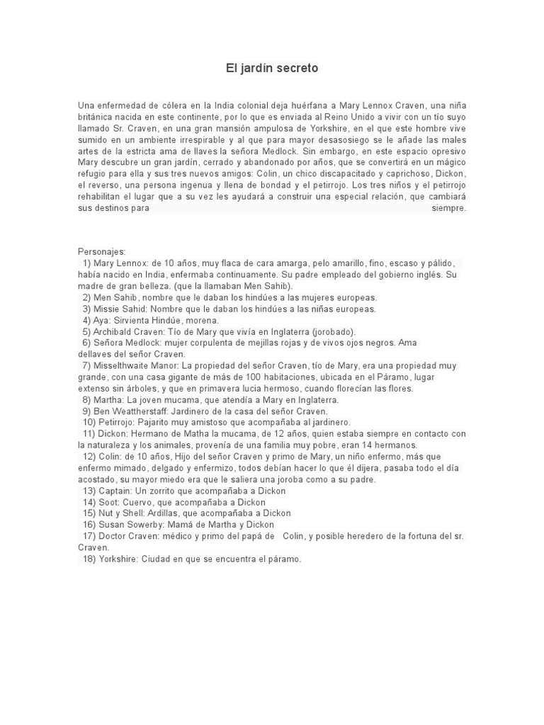Resumen Por Capitulos Del Libro El Jardin Secreto - Caja ...