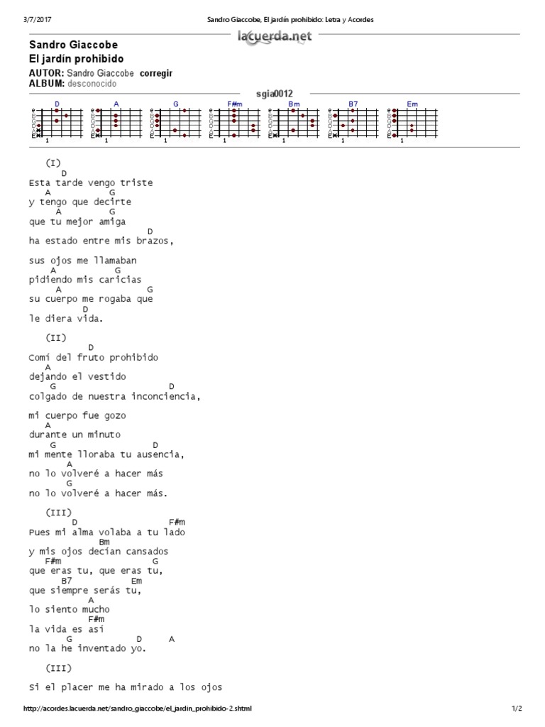 Sandro Giaccobe, El Jardín Prohibido_ Letra y Acordes.pdf ...